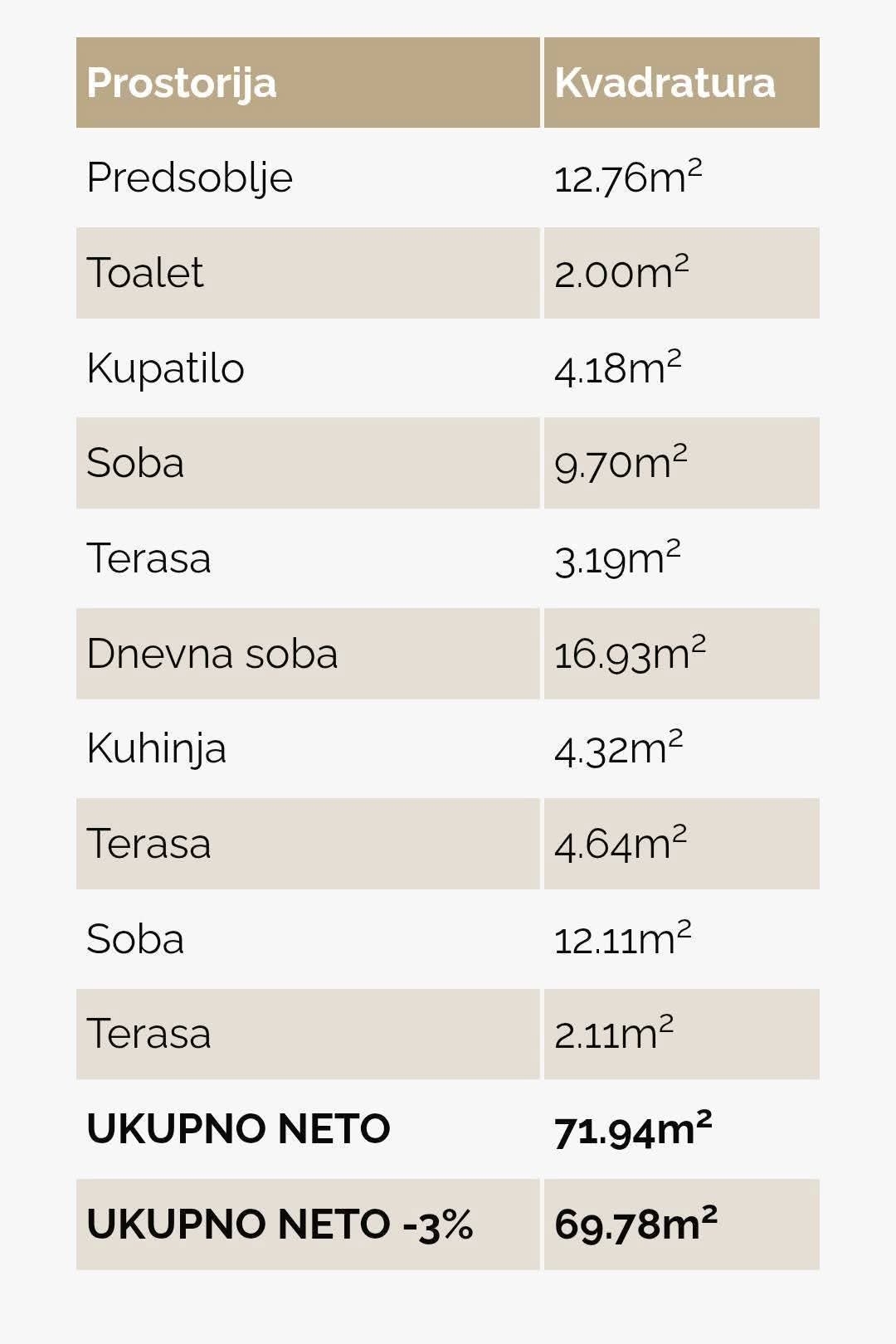 ➡️ Ukupna površina stana: 69,78 m²